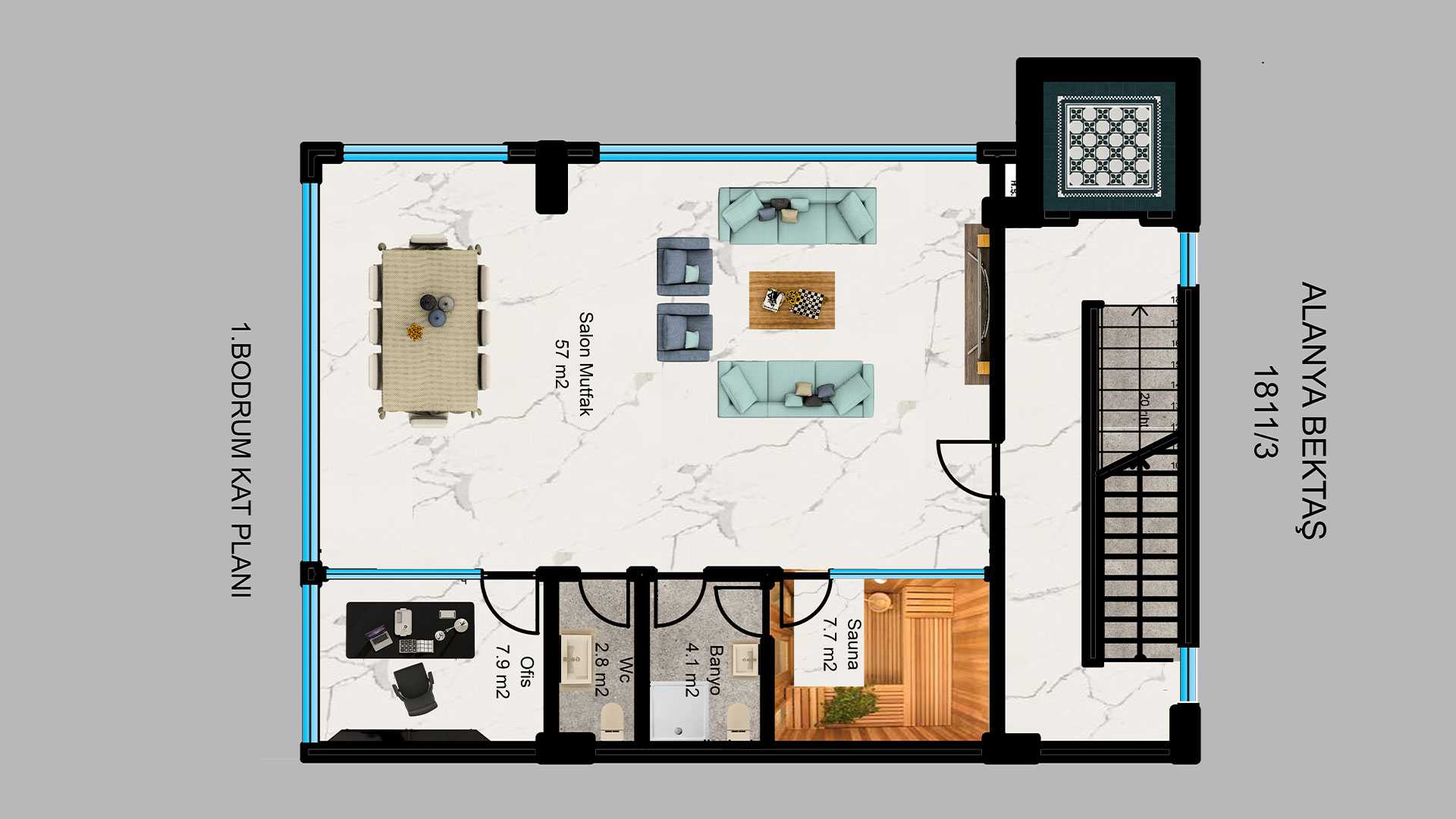 Bodrum 224,30 m2 (planlama için ücretsiz)