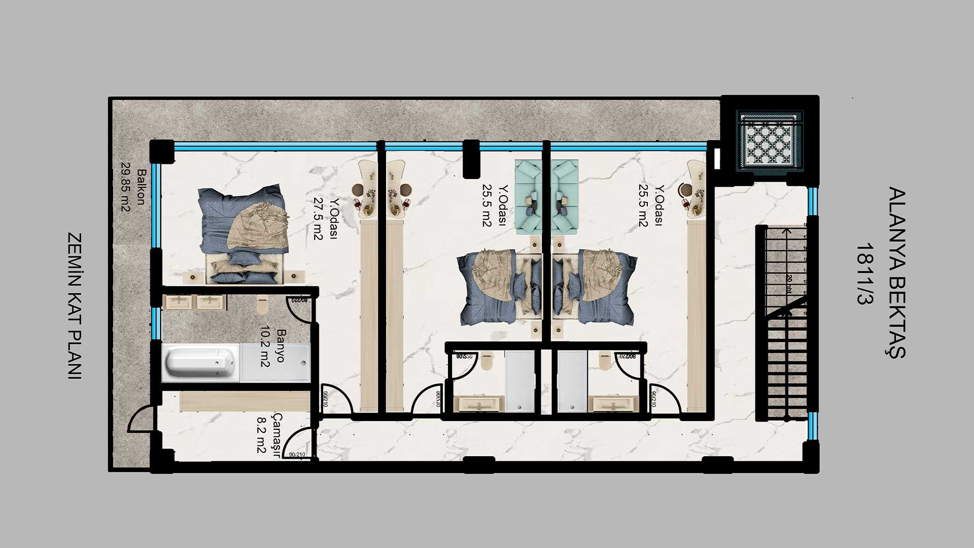 - Banyolu yatak odası 37,7m2